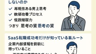 SaaS営業転職で年収を上げたい方必見。年収UPを実現する人の共通点、落ちる人の特徴、通過率94%の選考対策、企業選びのコツまで徹底解説。最短で市場価値を高める転職成功ルートがわかります。