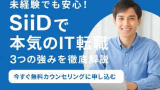 未経験からITエンジニア転職を成功させたい20代・30代へ。SiiDは現役エンジニア講師の指導と転職支援で、最短でキャリアチェンジを実現。口コミでも高評価のSiiDで、あなたの未来を変えよう。
