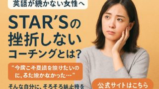 英語学習が続かない30代女性に支持されるSTAR’Sの魅力を口コミと体験談から解説。専属コーチの伴走で英語が“続く”理由と、転職・副業・キャリアの可能性が広がる仕組みを紹介。まずは無料体験で未来を描く一歩を。