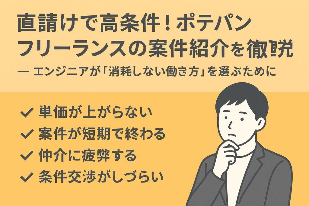 直請けで高条件!ポテパンフリーランスの案件紹介を徹底解説|エンジニアが「消耗しない働き方」を選ぶために