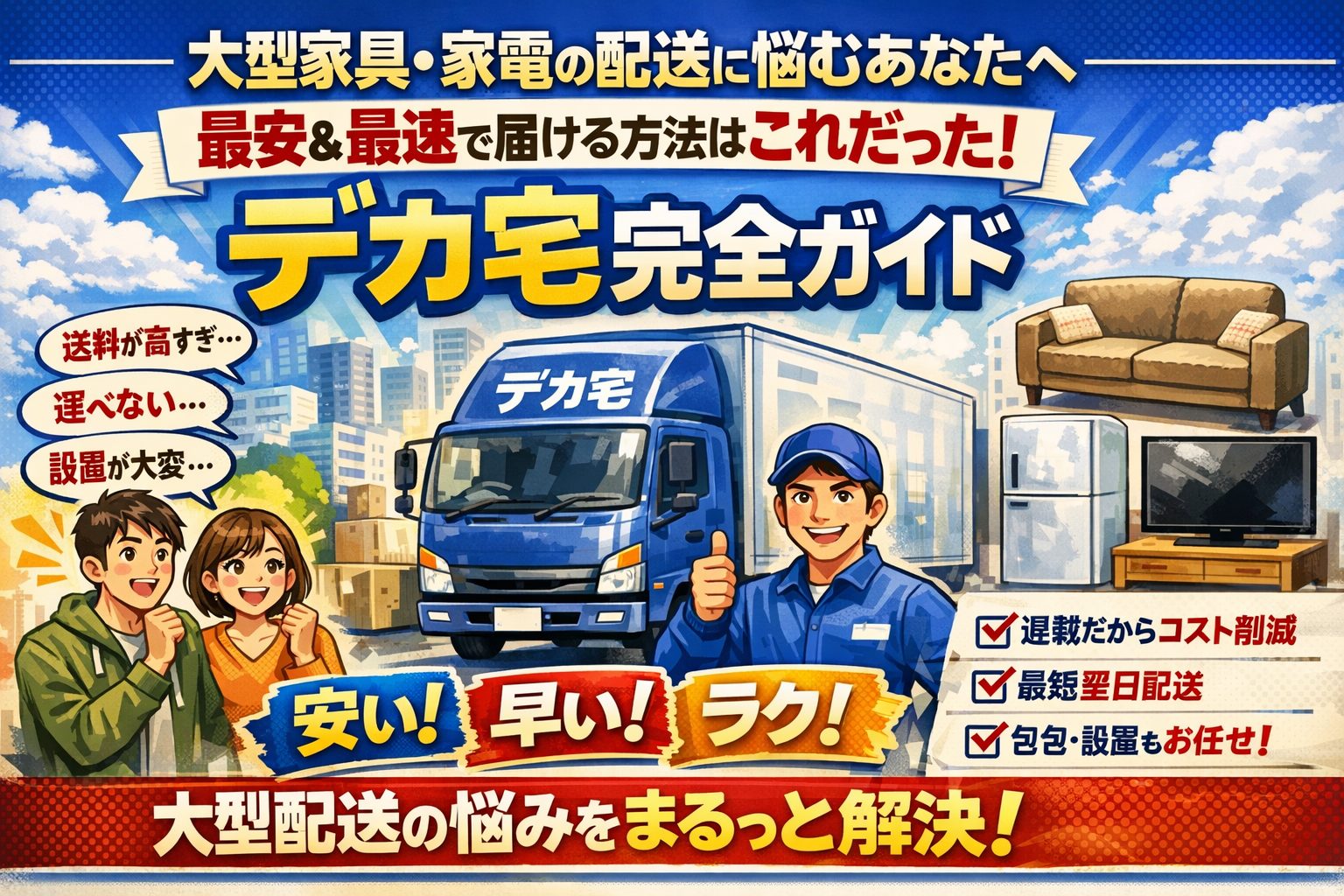 【大型家具・家電の配送に悩むあなたへ】最安&最速で届ける方法はこれだった|デカ宅完全ガイド