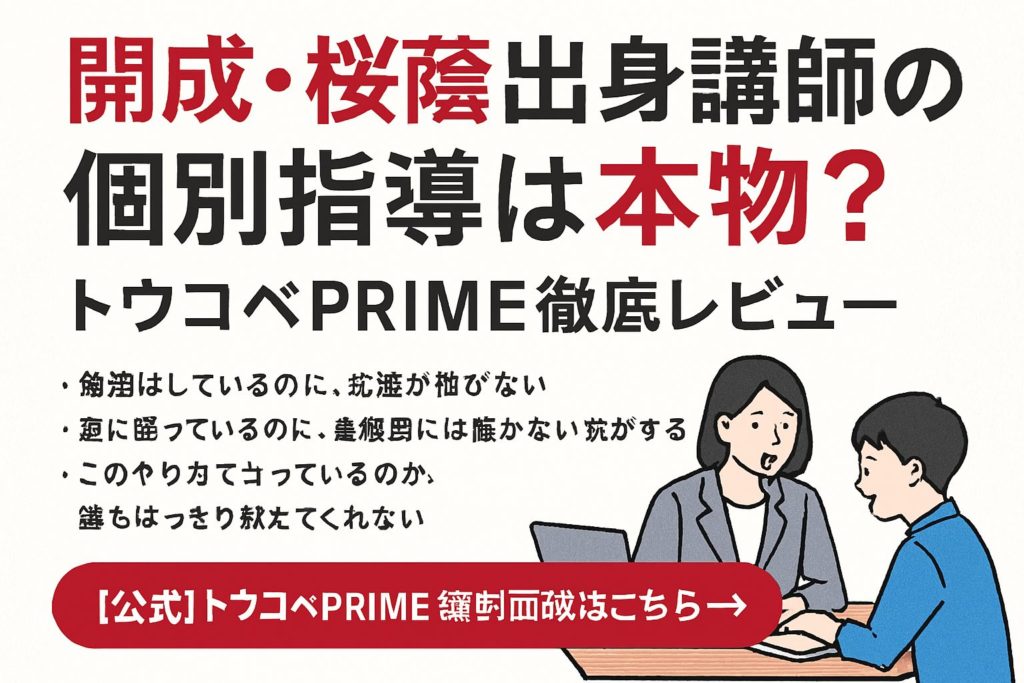 そこで注目されているのが、開成・桜蔭をはじめとした最難関中学出身講師のみが在籍するオンライン個別指導**『トウコべPRIME』**。本当に“本物”なのか? ただの肩書きだけではないのか?