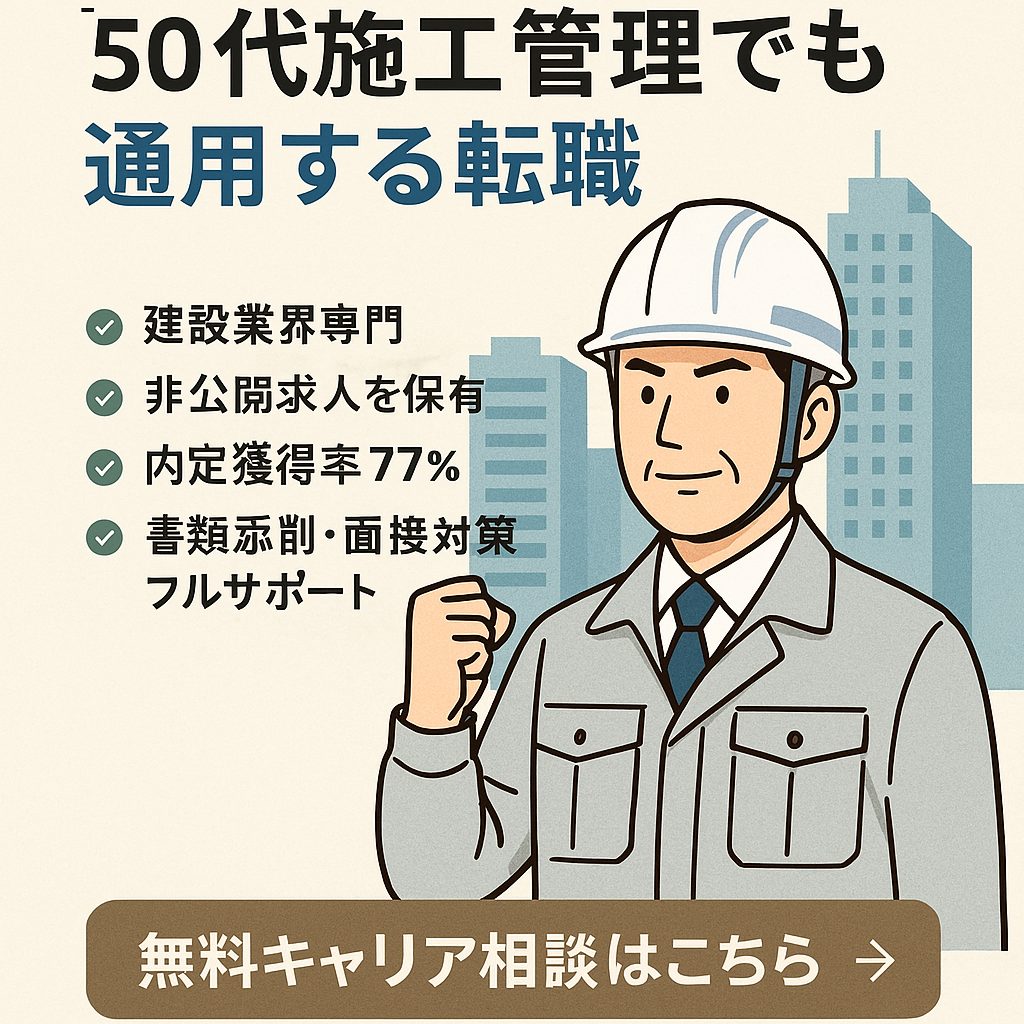50代の施工管理において、転職は十分に通用します。