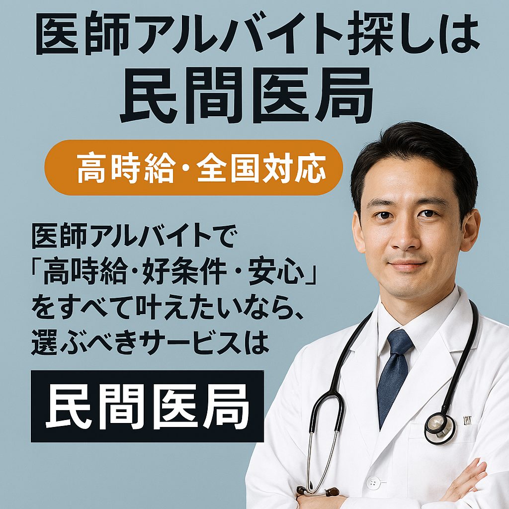 結論からお伝えします。医師アルバイトで**「高時給・好条件・安心」をすべて叶えたいなら、選ぶべきサービスは「民間医局」**です。