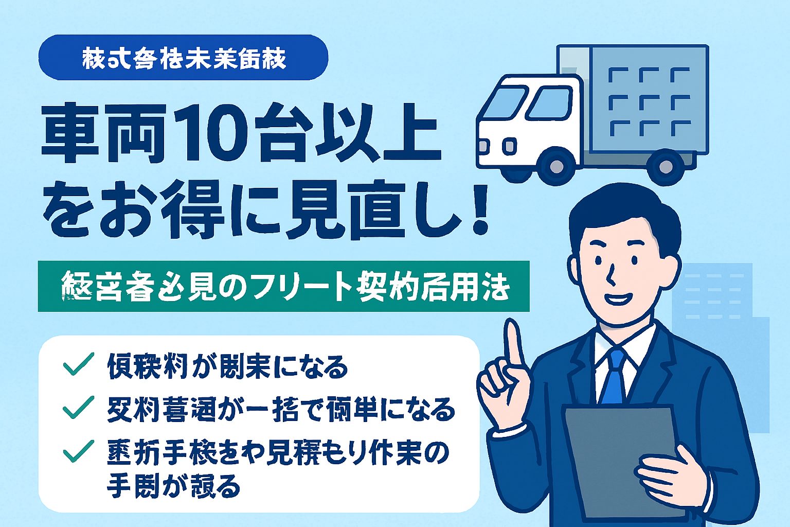 車両10台以上の経営者にとって、フリート契約はコスト削減と管理効率化の最強ツールです。