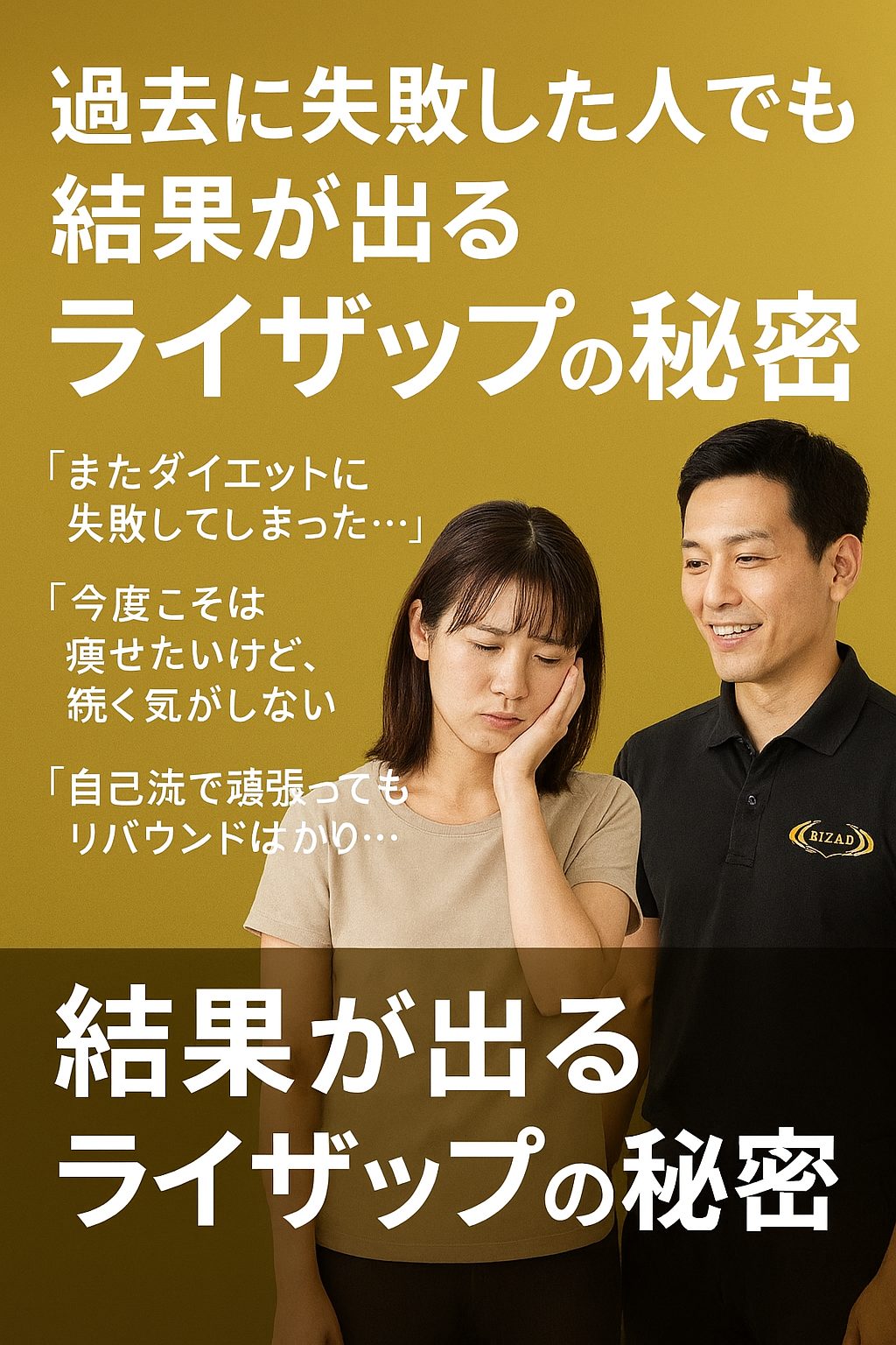 自己流で何度も失敗してきたあなたでも、ライザップなら大丈夫です。