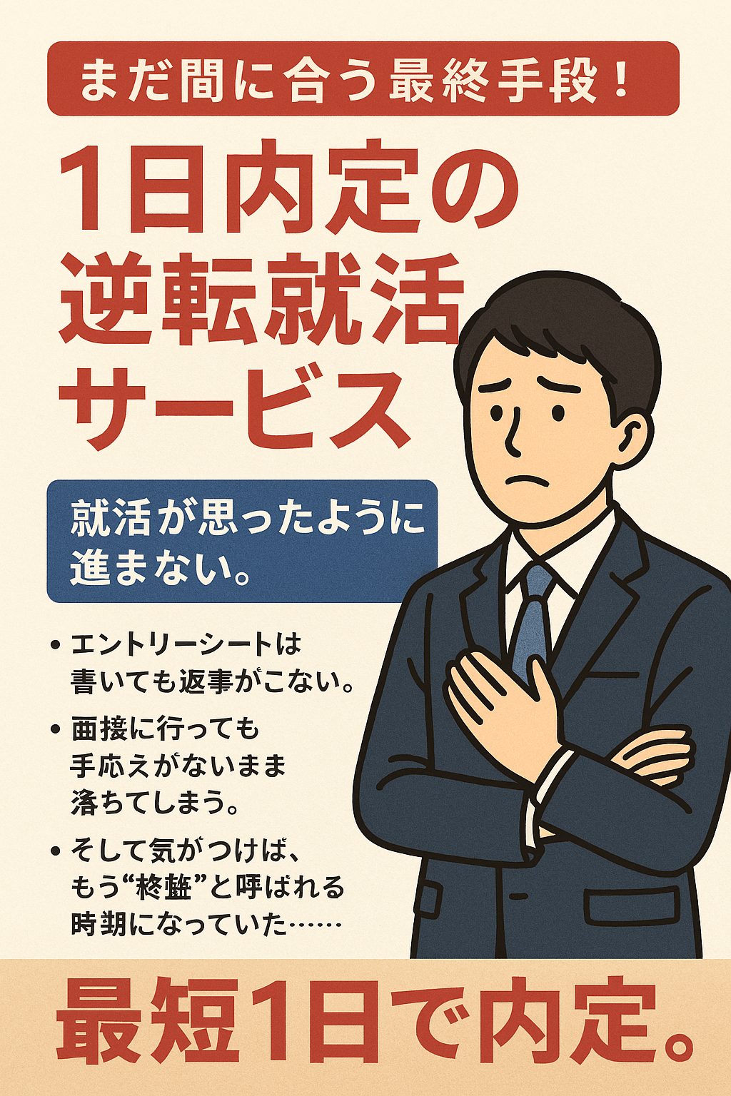 「最初は『1日内定なんて本当にある?』と思っていました。でも相談してみたら、思っていた以上に丁寧で、求人の質も良かったです。倍率が高い大手ばかり受けて落ちていた私には、まさに**“最後の一手”**でした。」